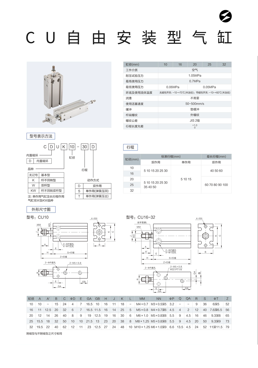 • CU自由安装气缸